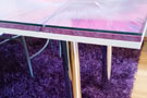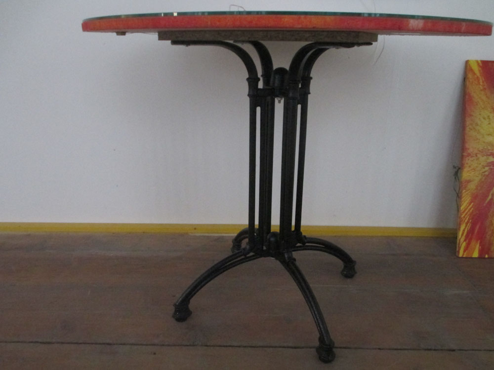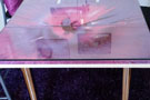 Der Originaltisch bleibt völlig unversehrt und wird mit einer Bildplatte (4 mm) belegt, auf die eine Glasscheibe mit geschliffener Kante gefügt wird. Der auf den Bildern ersichtliche Tisch ist ein unverkäuflicher Mustertisch!
